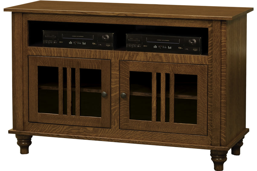 - 1 adjustable wood shelf behind each wood door; 2 behind each glass door